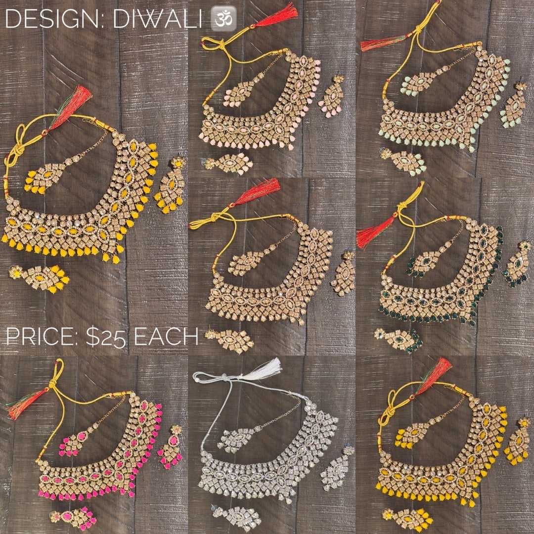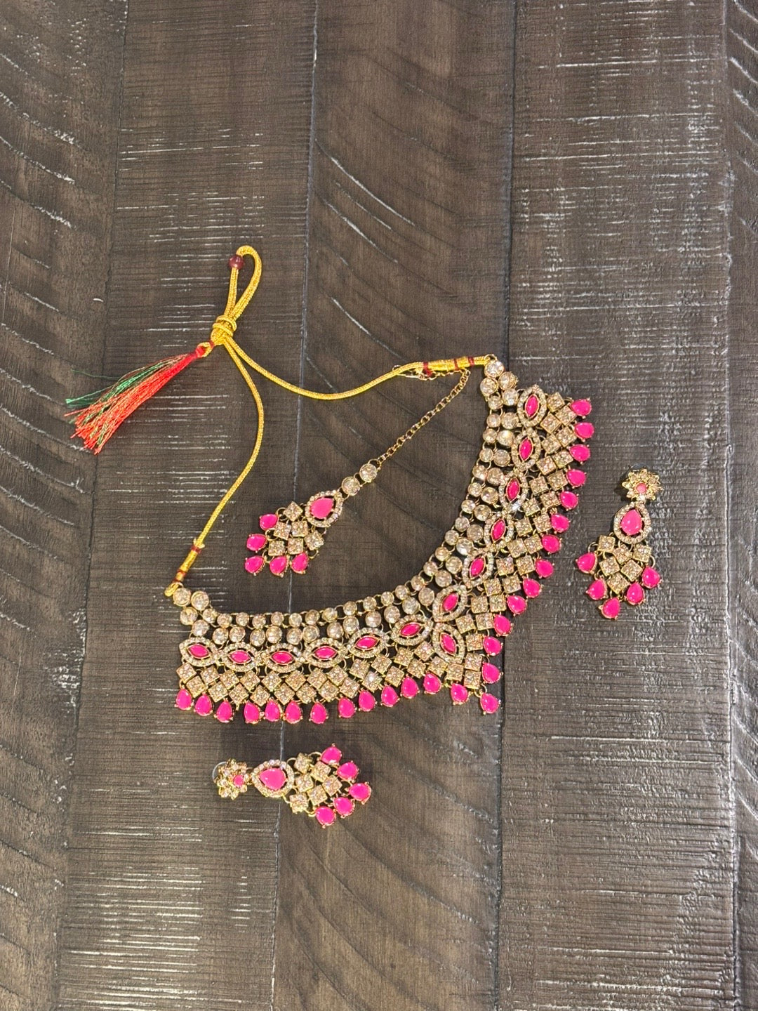 3 Piece Jewelry Set includes necklace, earrings, and tikka.