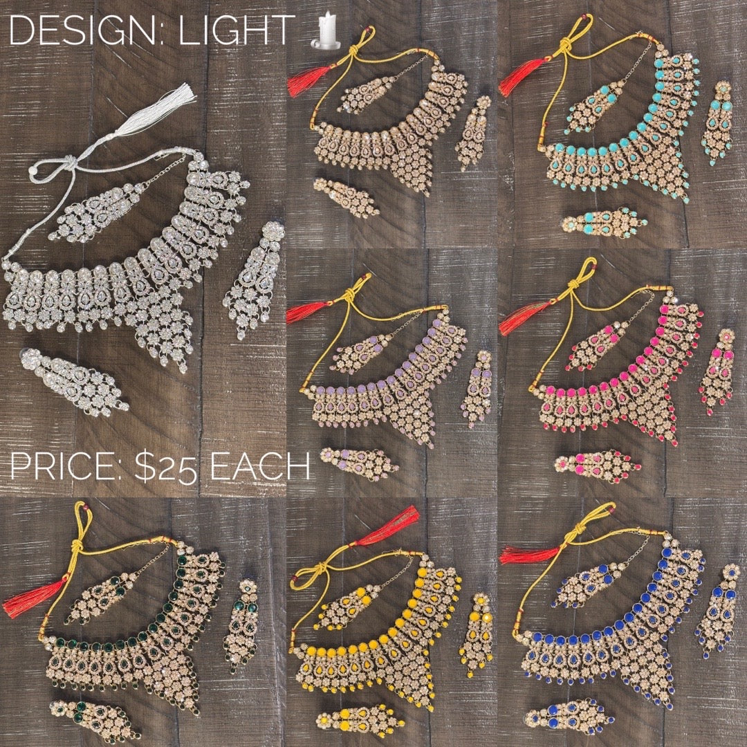 3 Piece Jewelry Set includes necklace, earrings, and tikka.